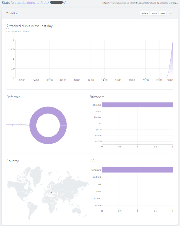 The frontend component will display the analytics in an easy-to-read form only to an user who has enough rights. The other applications in which I have analytics can be used as an inspiration. The simplest are Kutt and Umami.